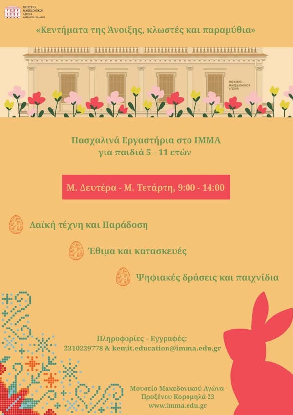 - Δευτέρα 20/07 – Παρασκευή 24/07 (για παιδιά δημοτικού, προνήπια & νήπια)