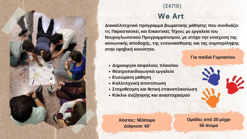- 50€ / 4 συναντήσεις τον μήνα για ένα παιδί και συνοδό