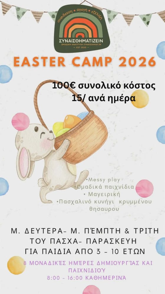 - Δευτέρα 24/08 – Παρασκευή 28/08 (για παιδιά δημοτικού, προνήπια & νήπια)