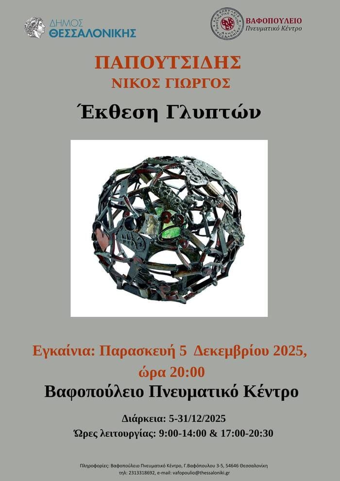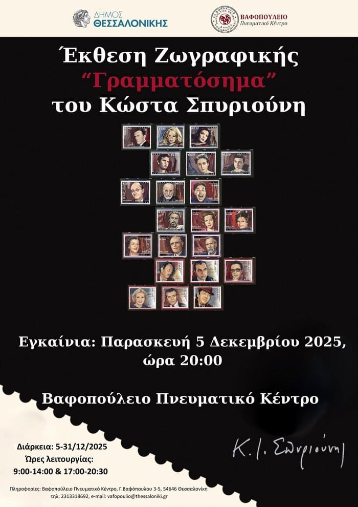 Τα εγκαίνια των εκθέσεων θα πραγματοποιηθούν την Παρασκευή 5 Δεκεμβρίου 2025, στις 20:00, στο Βαφοπούλειο Πνευματικό Κέντρο (Γ. Βαφόπουλου 3-5).