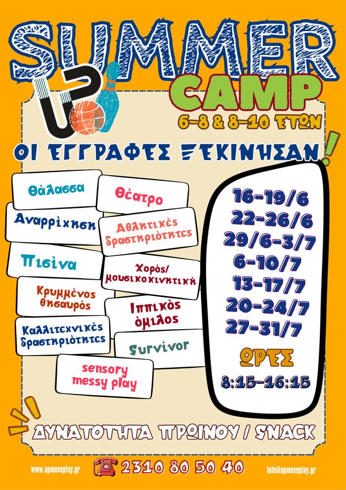 Οι δραστηριότητες θα πραγματοποιηθούν στον χώρο του Up move and play area και 2 φορές την εβδομάδα σε εξωτερικούς χώρους.