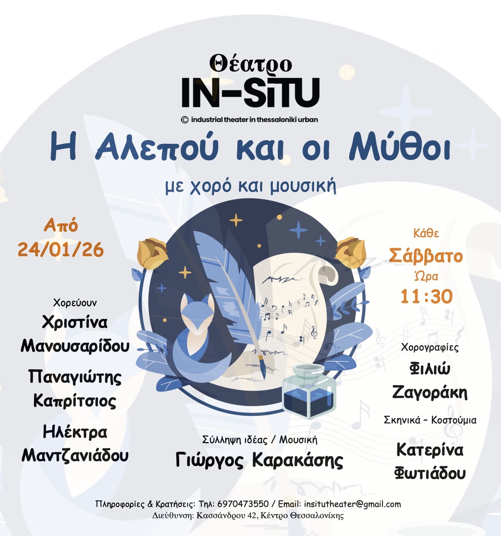 Το In Situ Stage παρουσιάζει τη νέα του παραγωγή «Η Αλεπού και οι Μύθοι», μια παράσταση, βασισμένη σε επιλεγμένους μύθους του Αισώπου, με ορχηστρική μουσική και σύγχρονο χορό χωρίς κείμενα.