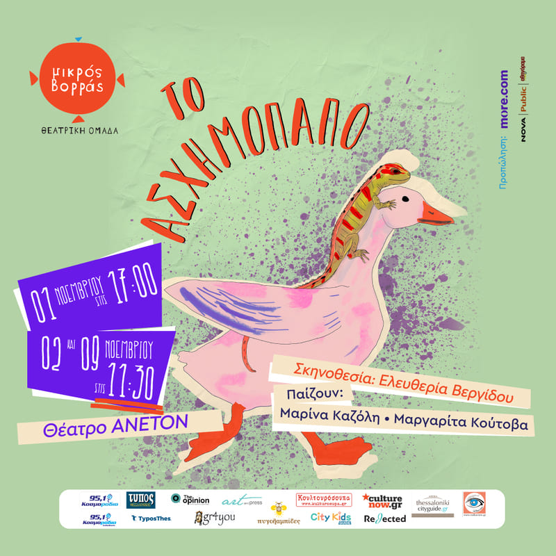 Ο Μικρός Βορράς παρουσιάζει μια ολοκαίνουργια, τρυφερή και ρυθμική διασκευή του κλασικού παραμυθιού “Το Ασχημόπαπο”, γραμμένη σε στίχο, γεμάτη αυθεντική μουσική και χορό!