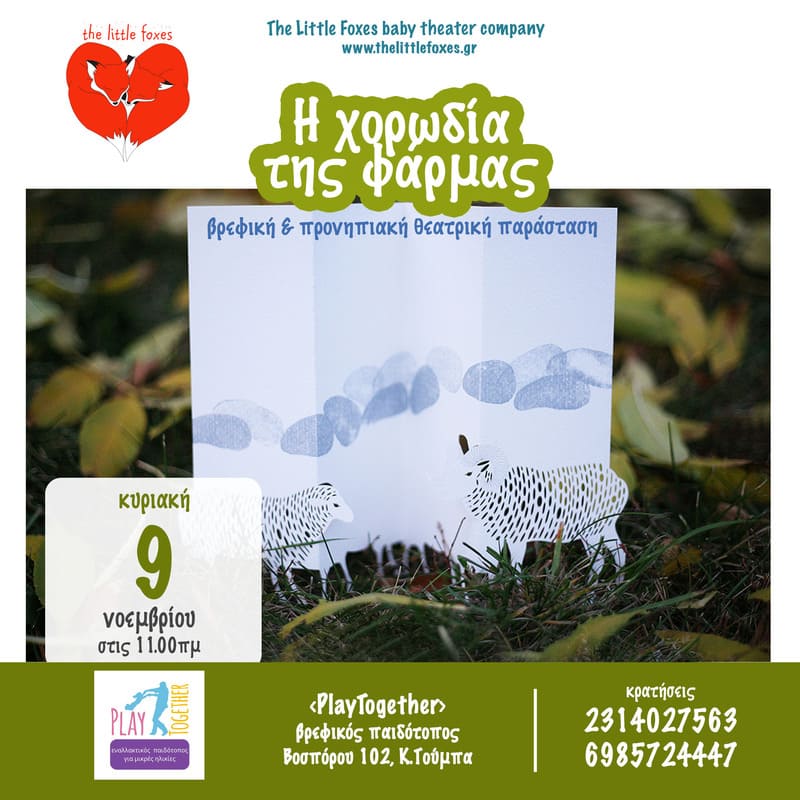 Την Κυριακή 9 Νοεμβρίου έρχονται στο PlayTogether, οι The Little foxes με μια μουσική παράσταση που πρωταγωνιστές θα είναι τα ζωάκια της φάρμας.