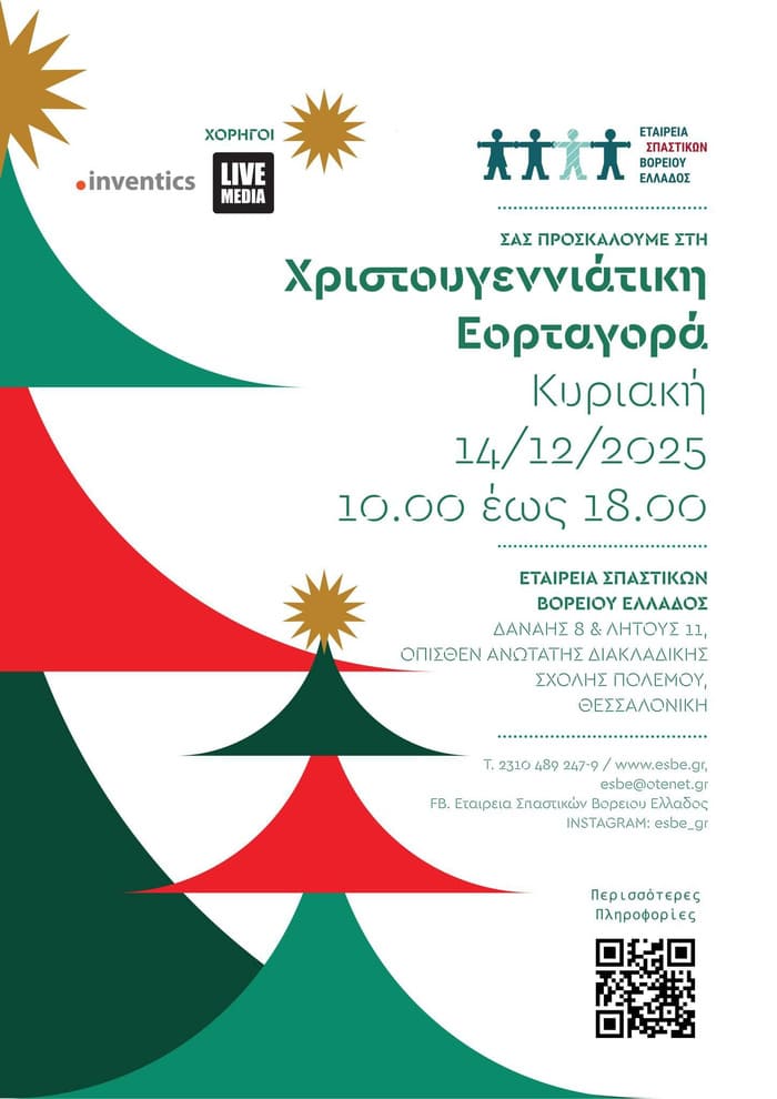 Η Εταιρεία Σπαστικών Βορείου Ελλάδος (ΕΣΒΕ) διοργανώνει και φέτος τη Χριστουγεννιάτικη Εορταγορά της, έναν θεσμό που εδώ και σαράντα χρόνια αποτελεί σημείο συνάντησης, προσφοράς και αγάπης.