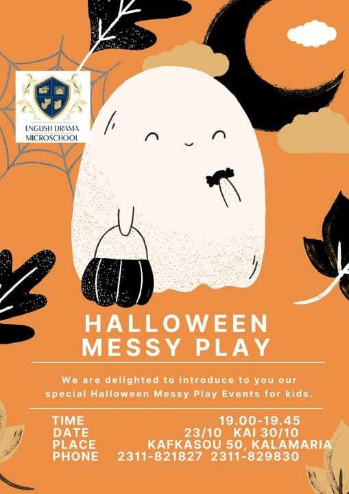 Το English Drama Microschool προσκαλεί παιδιά 5 – 8 ετών την Πέμπτη 23 και 30 Οκτωβρίου σε δύο ξεχωριστά φθινοπωρινά εργαστήρια messy play, μέσα από τα οποία θα ανακαλύψουν με όλες τους τις αισθήσεις τον μαγικό και spooky κόσμο του Halloween.