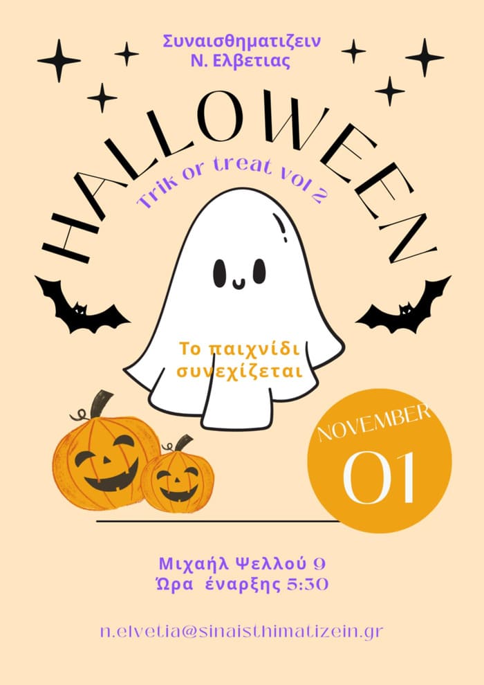Το απόγευμα της 1ης Νοεμβρίου, στις 17:30, στο Συναισθηματίζειν Ν. Ελβετίας, παιδιά ηλικίας 4 έως 10 ετών θα έχουν την ευκαιρία να περάσουν ένα μαγικό και… τρομακτικά διασκεδαστικό απόγευμα, γεμάτο δημιουργία και φαντασία.