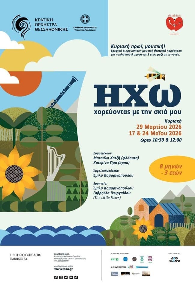 Η Κρατική Ορχήστρα Θεσσαλονίκης, πιστή στην αποστολή της να δημιουργεί προγράμματα για κάθε ηλικία, παρουσιάζει το νέο της πρόγραμμα για παιδιά από 8 μηνών έως 3 ετών, μαζί με συνοδό, σε μια συνεργασία με τη βρεφική θεατρική εταιρεία The Little Foxes. Οι παραστάσεις θα πραγματοποιηθούν στους φιλόξενους χώρους του Αρχαιολογικού Μουσείου Θεσσαλονίκης.