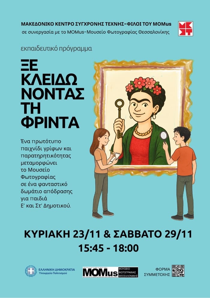 Με αφορμή την έκθεση «Frida Kahlo – Her Photos», το «Μακεδονικό Κέντρο Σύγχρονης Τέχνης – Φίλοι του MOMus», σε συνεργασία με το MOMus-Μουσείο Φωτογραφίας Θεσσαλονίκης διοργανώνει στους χώρους του μουσείου τη μουσειοπαιδαγωγική δράση «Ξεκλειδώνοντας τη Φρίντα».