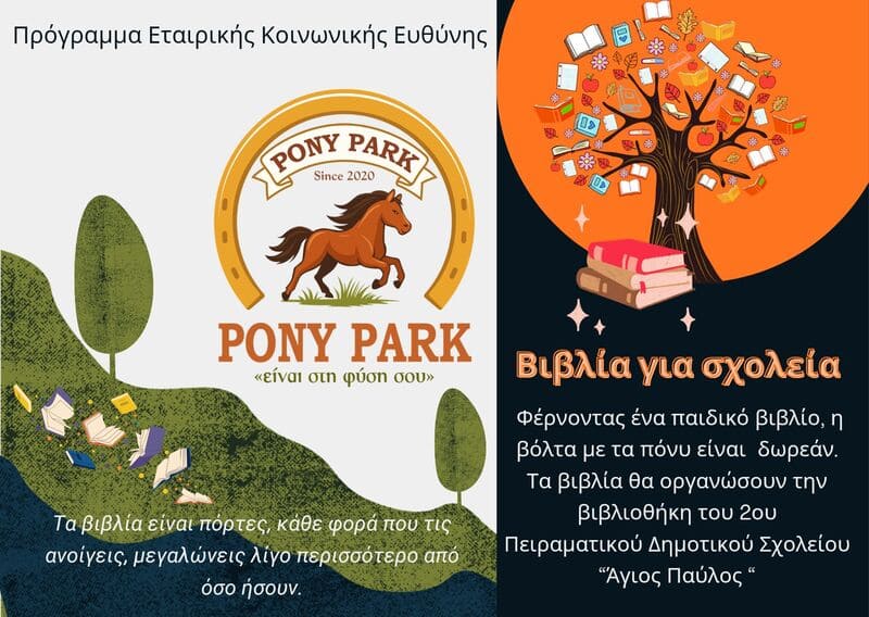 Μία βόλτα με πόνι ή άλογο με αντάλλαγμα ένα παιδικό βιβλίο σε καλή κατάσταση για το 2ο Πειραματικό Δημοτικό Σχολείο Αγίου Παύλου.