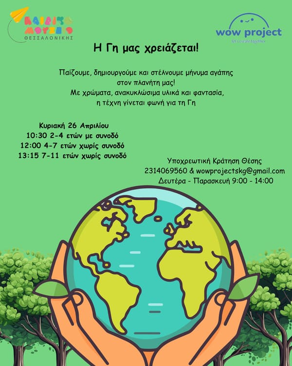 Την Κυριακή 26 Απριλίου τα παιδιά επισκέπτονται το Παιδικό Μουσείο Θεσσαλονίκης και στέλνουν μήνυμα αγάπης στον πλανήτη τους!