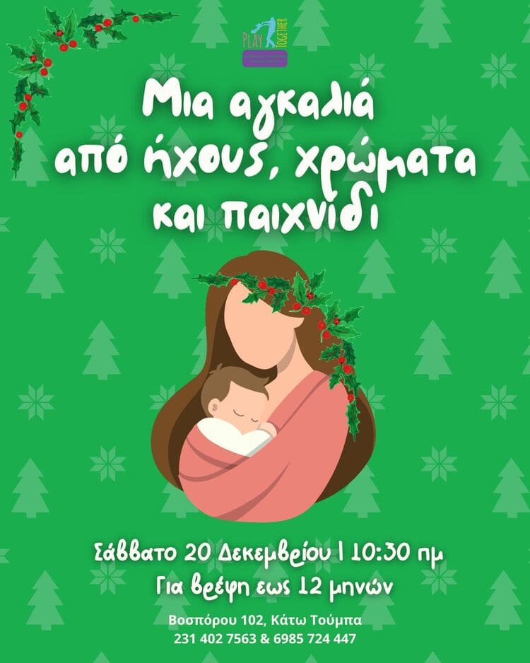 Το Play Together υποδέχεται το Σάββατο 20 Δεκεμβρίου παιδιά έως 12 μηνών σε ένα θεατρικό εργαστήρι γεμάτο μουσικές, ήχους, φώτα και απαλές κινήσεις, σχεδιασμένο ειδικά για τις πρώτες τους εμπειρίες μέσα από το παιχνίδι.