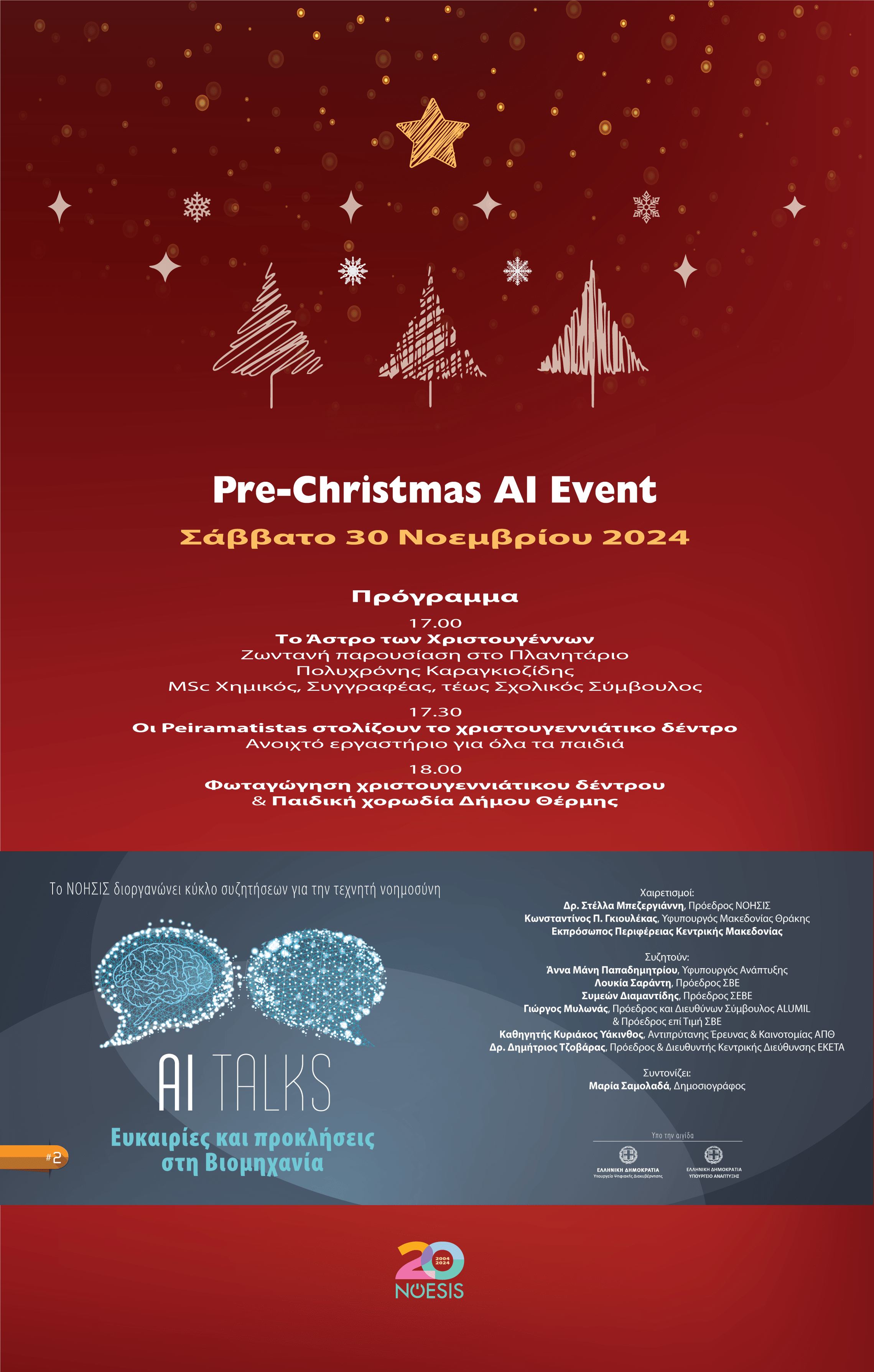 Το Σάββατο 30.11.2024 ανάβουν τα φώτα του δέντρου στο ΝΟΗΣΙΣ και συζητούν για την Τεχνητή Νοημοσύνη στη Βιομηχανία.