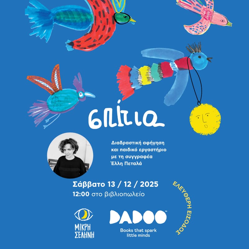 Το Σάββατο 13 Δεκεμβρίου στις 12.00, στο παιδικό βιβλιοπωλείο DADOO, σε συνεργασία με τις παιδικές εκδόσεις Μικρή Σελήνη, φιλοξενείται η συγγραφέας Έλλη Πεταλά για να παρουσιάσει το νέο της βιβλίου «σπίτια».